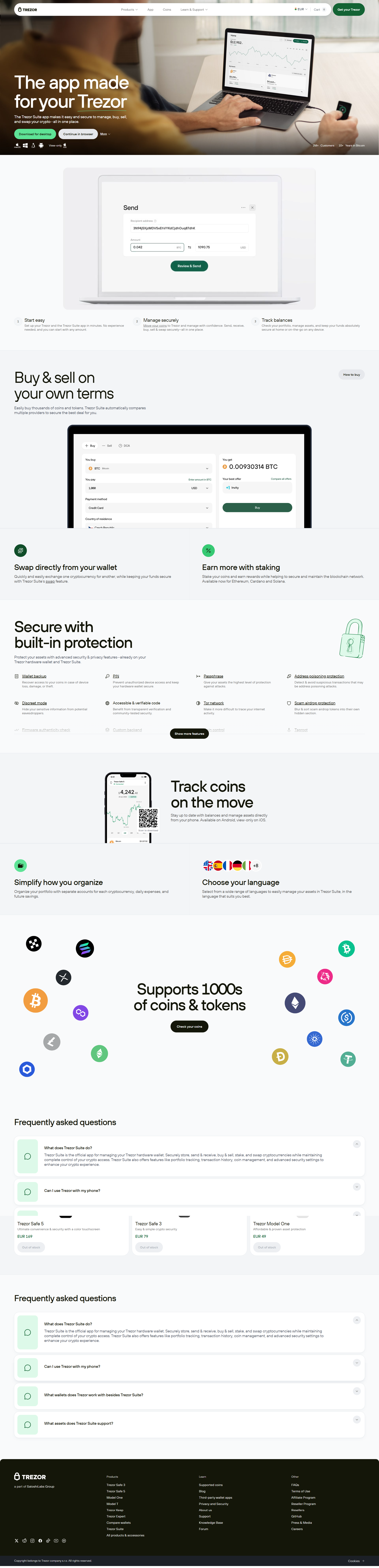 After completing Trézor.io/Start®, users manage their assets through Trézor Suite, the official desktop and web interface.